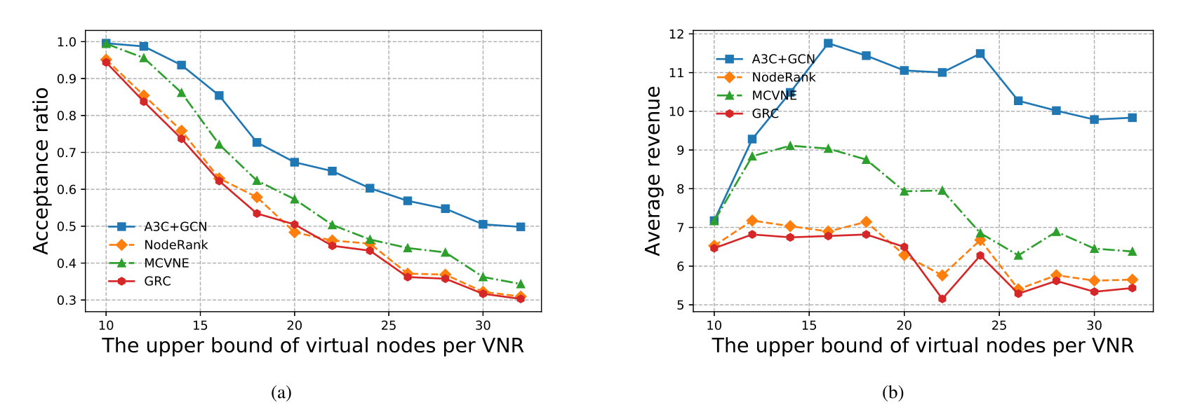 实验模拟:将VNR中的虚拟节点数量从[2,10]的均匀分布增加到[2,32],步长为2。