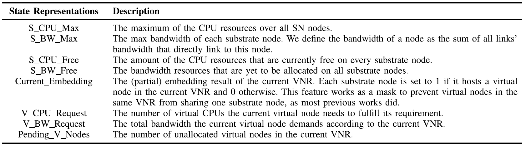 - 因为同一VNR中的两个虚拟节点不能共享一个特定的基板节点,单个VNR中的更多节点限制了候选动作空间