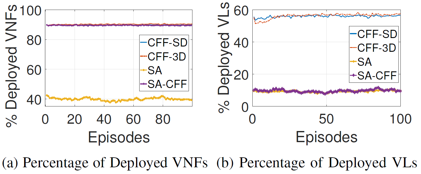 - VL请求:\((1,30)\) Mbps随机分配,延迟为1100毫秒,延迟率为0%0.5%