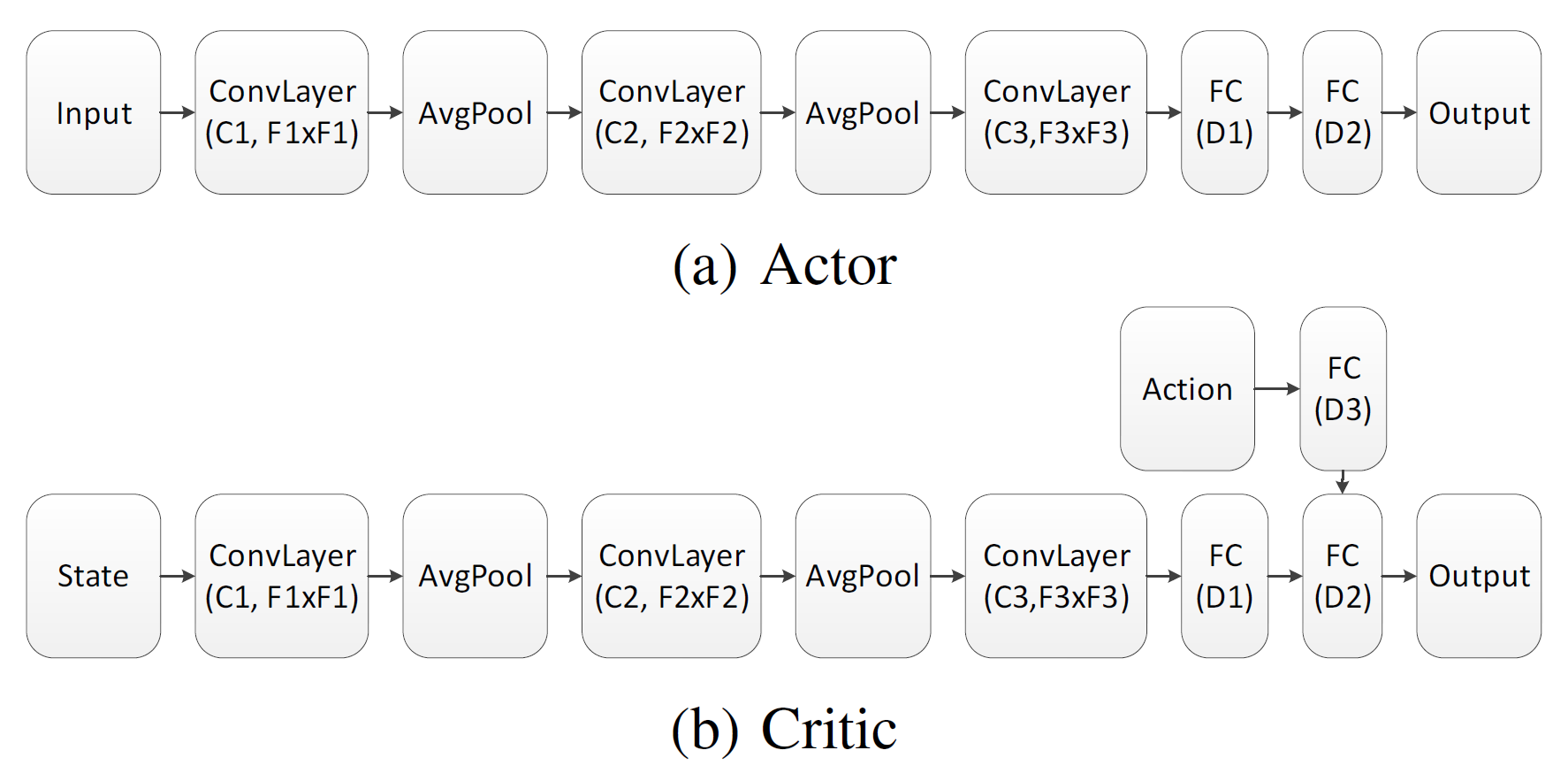 actor和critic神经网络由多种层组成来提取state中的信息,特别地,critic额外使用了卷积层来提取动作的特征: