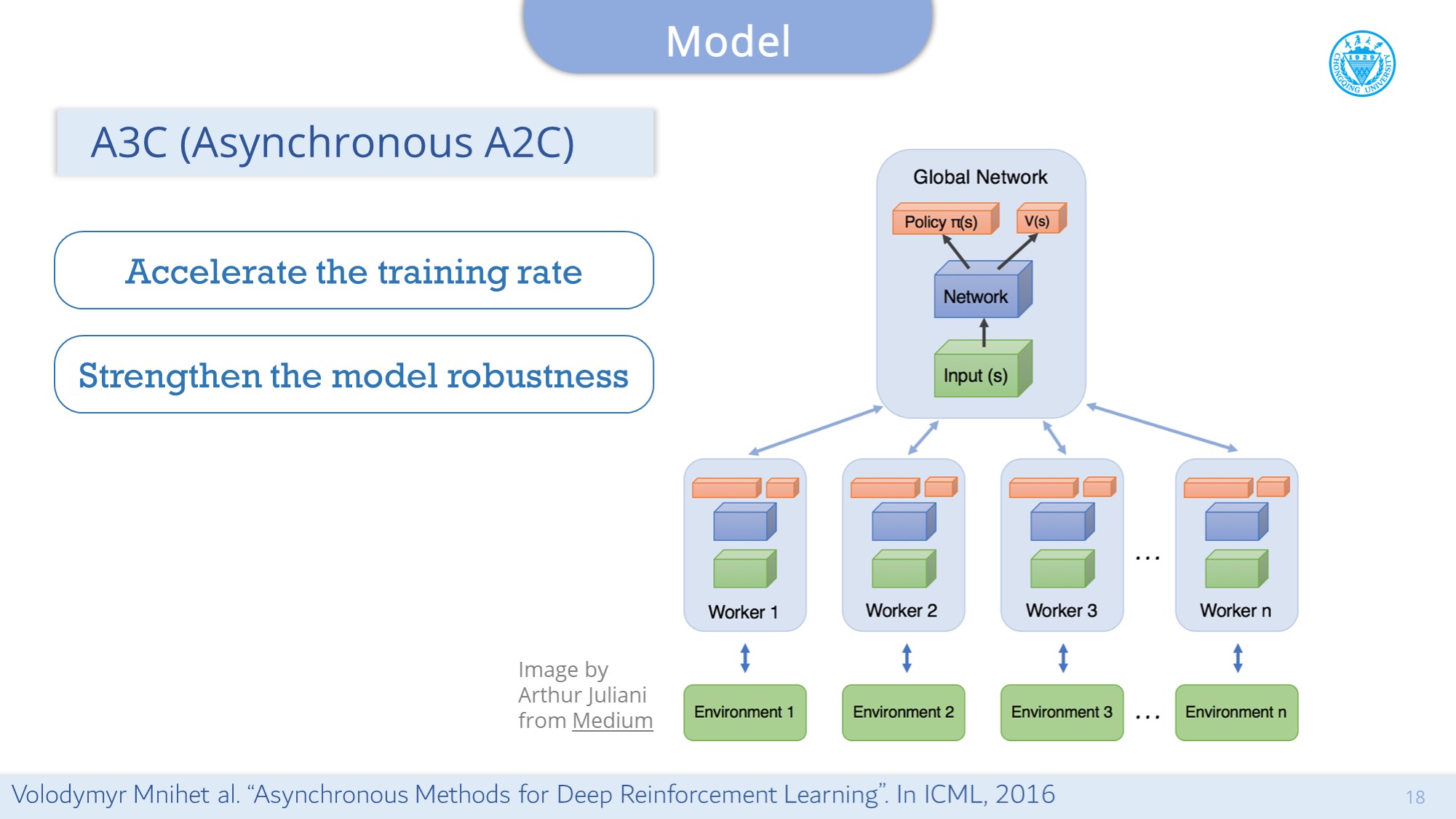 - What's more, we utilize the well-known A3C method to enhance the training efficiency and model robustness.