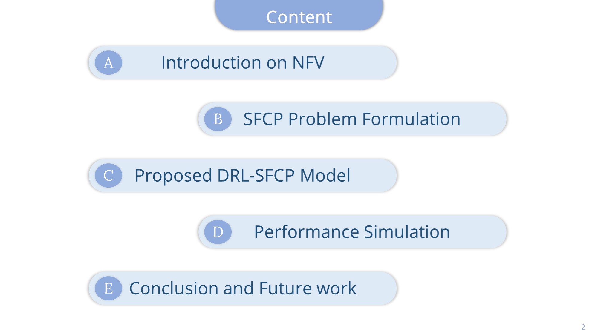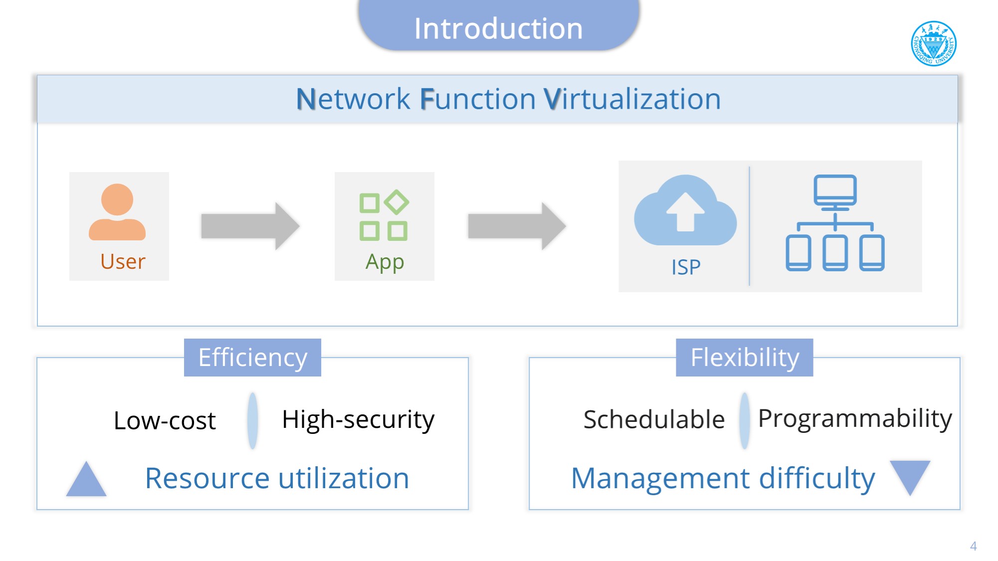 - Firstly, I will introduce the development and significance of Network Function Virtualization.