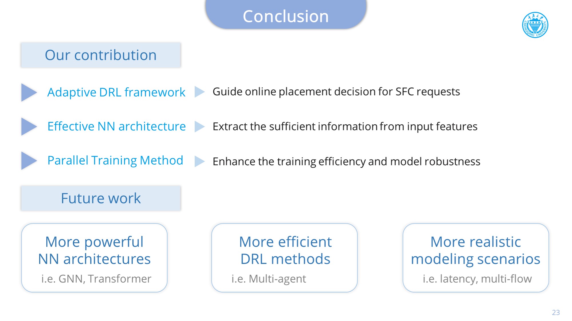 Additionally, more powerful neural network architectures, more efficient DRL methods and More realistic modelling scenarios are expected to be studied in future.