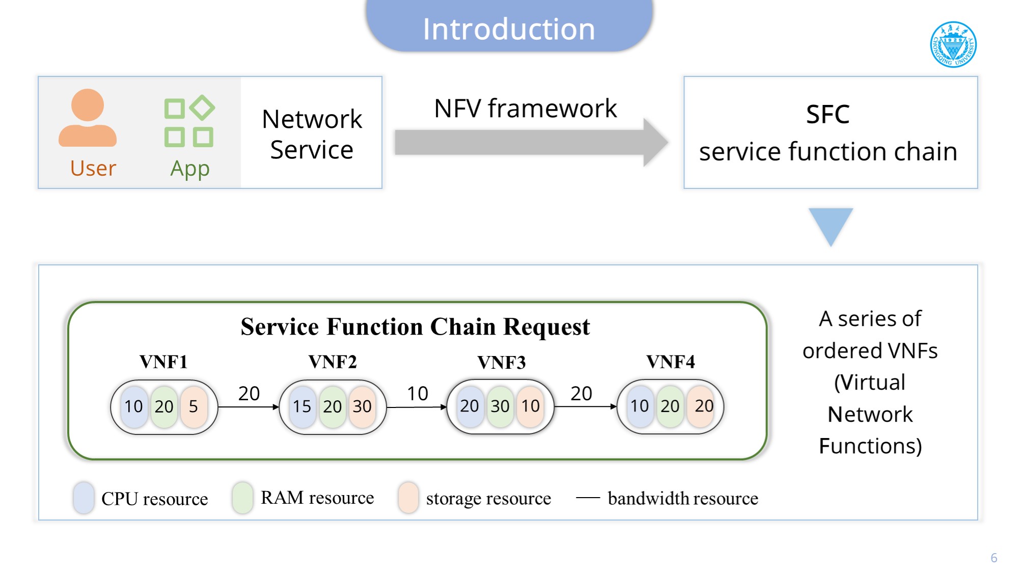 Benefiting from NFV technology, a complex network service can be composed of a series of ordered virtual network functions, known as service function chain.